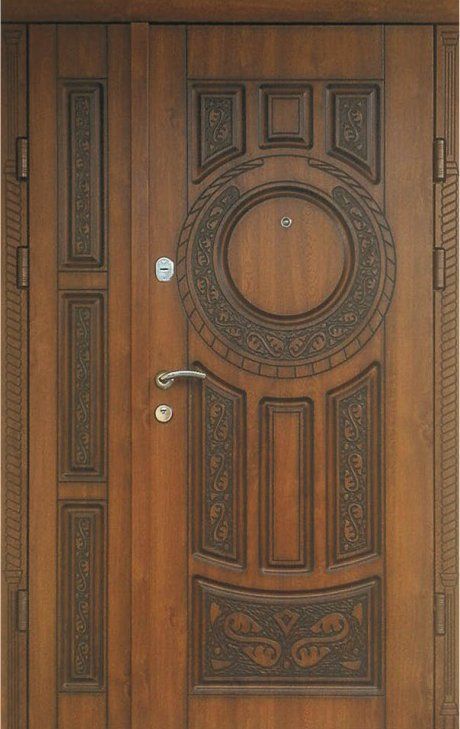 Поскольку в большинстве случаев устанавливаемые на входе в коттедж двустворчатые двери являются еще и предметом интерьера, украшающим здание, их дизайну предается особое значение. Эти двери, как правило, отделываются атмосферостойким МДФ, натуральным шпоном, массивом. Эффектно на таких дверях смотрится витражный узор, применение ковки, зеркальных элементов. Вариантов декора входной двустворчатой двери масса, тут все зависит от пожеланий заказчика.