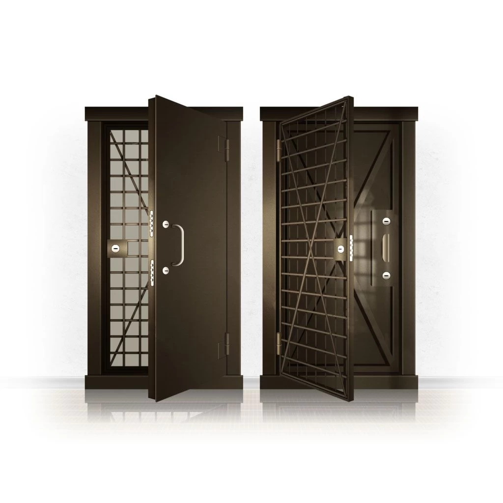 Металлические двери КХО и КХН представляют собой входные блоки, обладающие высоким уровнем взломостойкости и состоят из трех основных элементов: усиленного каркаса, сплошного металлического полотна и решетчатой двери. Дверной блок изготавливается из стального уголка 100*100 мм. Места крепления блока к стене цементируются и закрываются стальными наличниками шириной 40 мм. Крепеж заходит вглубь стены на 80 мм. В конструкции внешней створки монтируются ребра жесткости, для обшивки используется сталь толщиной не менее 3 мм. Внутренняя решетка изготавливается из прутка диаметром 16 мм. Размер ячеек решетки должен составлять не более 15 на 15 см. В точках пересечения прутья надежно приваривают друг к другу. В КХО и КХН необходимо поддерживать определенную температуру и влажность. Для этого внутреннее пространство глухой двери заполняется теплоизоляционным материалом, а по периметру двери приклеивается уплотнитель. Такие двери оборудуются замками с повышенным уровнем взломостойкости. Специализированные двери КХО и КХН в Бакале могут быть оснащены сигнализацией, в конструкции могут быть проушины для навесного замка и элементами для опечатывания. Если идет речь о двери в комнату хранения оружия, в створке оборудуется окно для выдачи оружия и спец. средств, которое накрывается стальной дверцей.